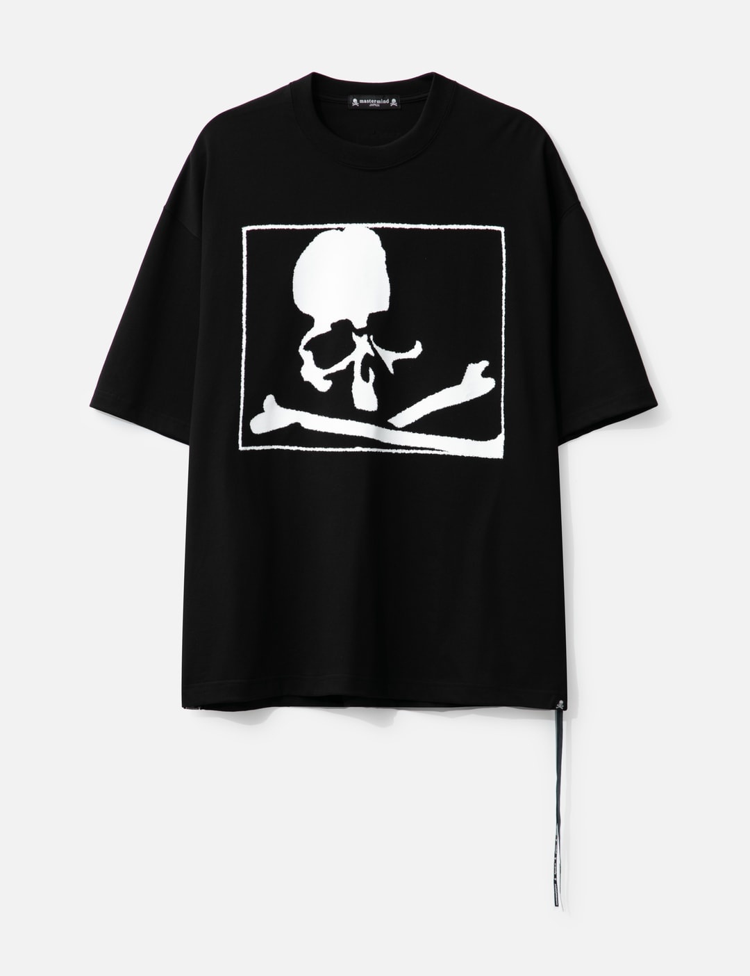 - Mastermind Japan - MJ Blurred Skull Boxy T-shirt - Made by Mastermind's own-made " Suvin Gold × Giza hybrid cotton" - Deodorant yarn - Boxt fit - Ribbed crewneck - Short sleeve - Blurred skull printed on the front - Logo label on back yoke - Made in Japan - Color: Black - Material: 100% Cotton - See more SS T-Shirts, T-Shirts and Clothing SIZING - Model wears size M - Model measures: Height 188cm, Chest 36"/92cm, Waist 30"/76cm, Hip 37"/94cm