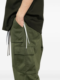 cargo trousers Highlights - Olive green - Elasticated drawstring waistband - Two side slash pockets - Two side cargo pockets - Two rear flap pockets Imported Composition Cotton 84%, Polyester 16% SIZE & FIT Model measurements Height 6 ft 2 in(1.88 m) Bust/Chest 34.25 in(87 cm) Hips 34.64 in(88 cm) Waist 26.77 in(68 cm) FittingInformation Designed for a tapered leg, offering a loose unrestricted fit over the leg with a closer fit towards the ankle The elasticated waist allows for a comfortable fit Made from a midweight non-stretch fabric
