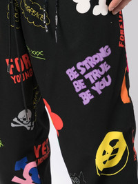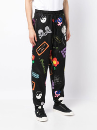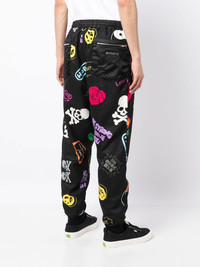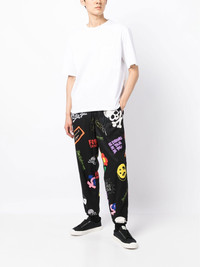 graphic-print drawstring track pants black/multicolour all-over graphic print elasticated waistband drawstring fastening two diagonal pockets to the sides elasticated cuffs Imported Composition Polyester 100% SIZE & FIT Model measurements Height 6 ft 2 in(1.87 m) Bust/Chest 34.25 in(87 cm) Hips 36.22 in(92 cm) Waist 29.52 in(75 cm) FittingInformation This piece fits true to size. We recommend you get your regular size Designed to be loose over the leg with a fitted waist and hem Made with a mid-weight fabric