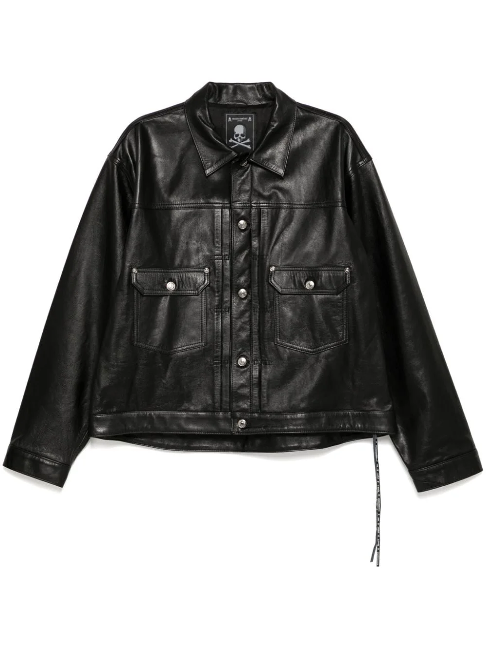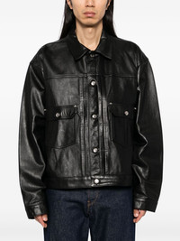 leather jacket Highlights - Black - Leather - Front button fastening - Silver-tone hardware - Panelled design - Two front button-fastening pockets - Long sleeves - Buttoned cuffs - Straight hem - Full lining Imported Composition Lining: Silk 100% Outer: Leather 100% SIZE & FIT Model measurements Height 6 ft 1 in(1.85 m) Bust/Chest 35.43 in(90 cm) Hips 36.22 in(92 cm) Waist 28.74 in(73 cm) FittingInformation Designed for a relaxed fit, this piece allows for comfort and movement when worn Constructed with additional length on the sleeve Firm leather offering little flexibility to maintain its durability and sturdiness