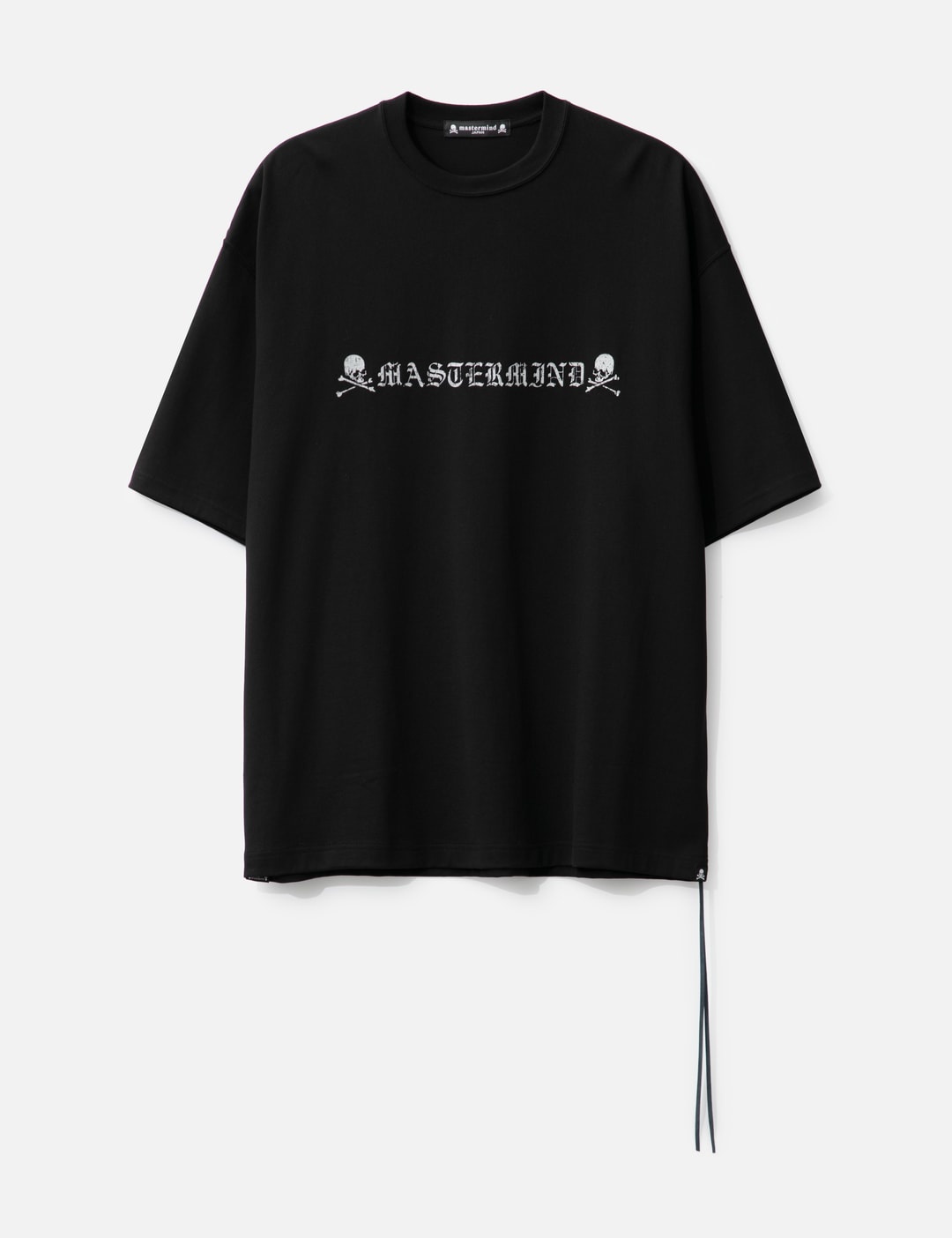 - Mastermind Japan - MJ Boxy Logo T-shirt - Made by Mastermind's own-made " Suvin Gold × Giza hybrid cotton" - Deodorant yarn - Boxy fit - Ribbed crewneck - Short sleeve - Scratched reflective print on the front and the back - Made in Japan - Color: Black - Material: 100% Cotton - See more SS T-Shirts, T-Shirts and Clothing SIZING - Model wears size M - Model measures: Height 188cm, Chest 36"/92cm, Waist 30"/76cm, Hip 37"/94cm