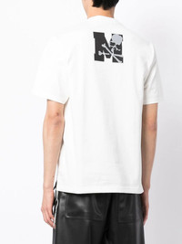 logo-print T-shirt white/black cotton logo print to the front skull print to the rear crew neck short sleeves straight hem Imported Composition Cotton 100% SIZE & FIT Model measurements Height 6 ft 2 in(1.87 m) Bust/Chest 34.25 in(87 cm) Hips 36.22 in(92 cm) Waist 29.52 in(75 cm) FittingInformation This piece fits true to size. We recommend you get your regular size Cut for a loose fit Made with a mid-weight fabric Washing instructions Hand Wash