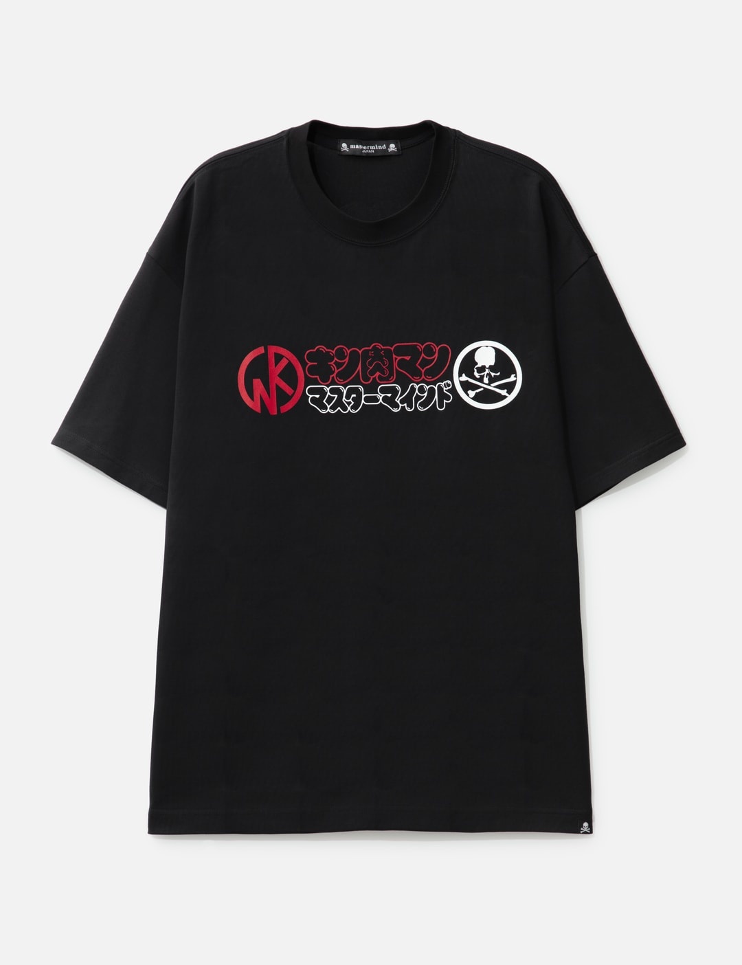 - Mastermind Japan - MASTERMIND JAPAN x Kinnikuman T-Shirt - MASTERMIND JAPAN x Kinnikuman collaboration - Ribbed crewneck - Short sleeves - Printed logo and graphic - Straight hem - Color: Black - Material: 100% Cotton - See more SS T-Shirts, T-Shirts and Clothing SIZING - Model wears size M - Model measures: Height 189cm, Chest 31.5"/80cm, Waist 27”/69cm, Hip 34.3’’/87cm