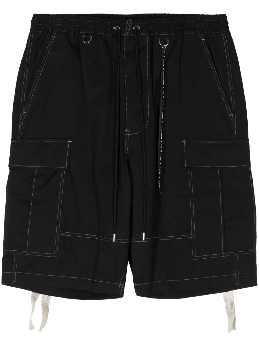 skull-print cargo shorts Highlights - Black - Cotton - Embroidered logo to the rear - Draped strap detailing - D-ring findings - Wide leg - Elasticated drawstring waistband - Two side slit pockets - Two side cargo pockets - Two rear flap pockets - Knee-length Imported Composition Cotton 100%