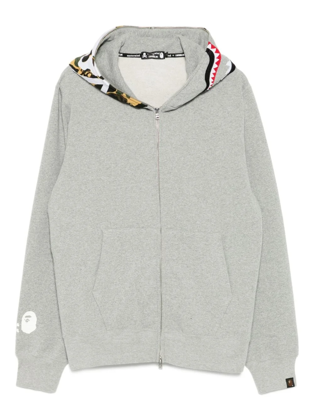 x Bape camo-panel hoodie Highlights - Heather grey - Front two-way zip fastening - Two side pouch pockets - Ribbed cuffs and hem - Mini logo tag Imported Composition Cotton 100% SIZE & FIT Model measurements Height 6 ft 2 in(1.88 m) Bust/Chest 34.25 in(87 cm) Hips 34.64 in(88 cm) Waist 26.77 in(68 cm) FittingInformation Designed for a relaxed fit, this piece allows for comfort and movement when worn The ribbed hem offers a close, comfortable fit Made from a midweight non-stretch fabric, this piece offers minimal elasticity when worn Washing instructions Machine Wash