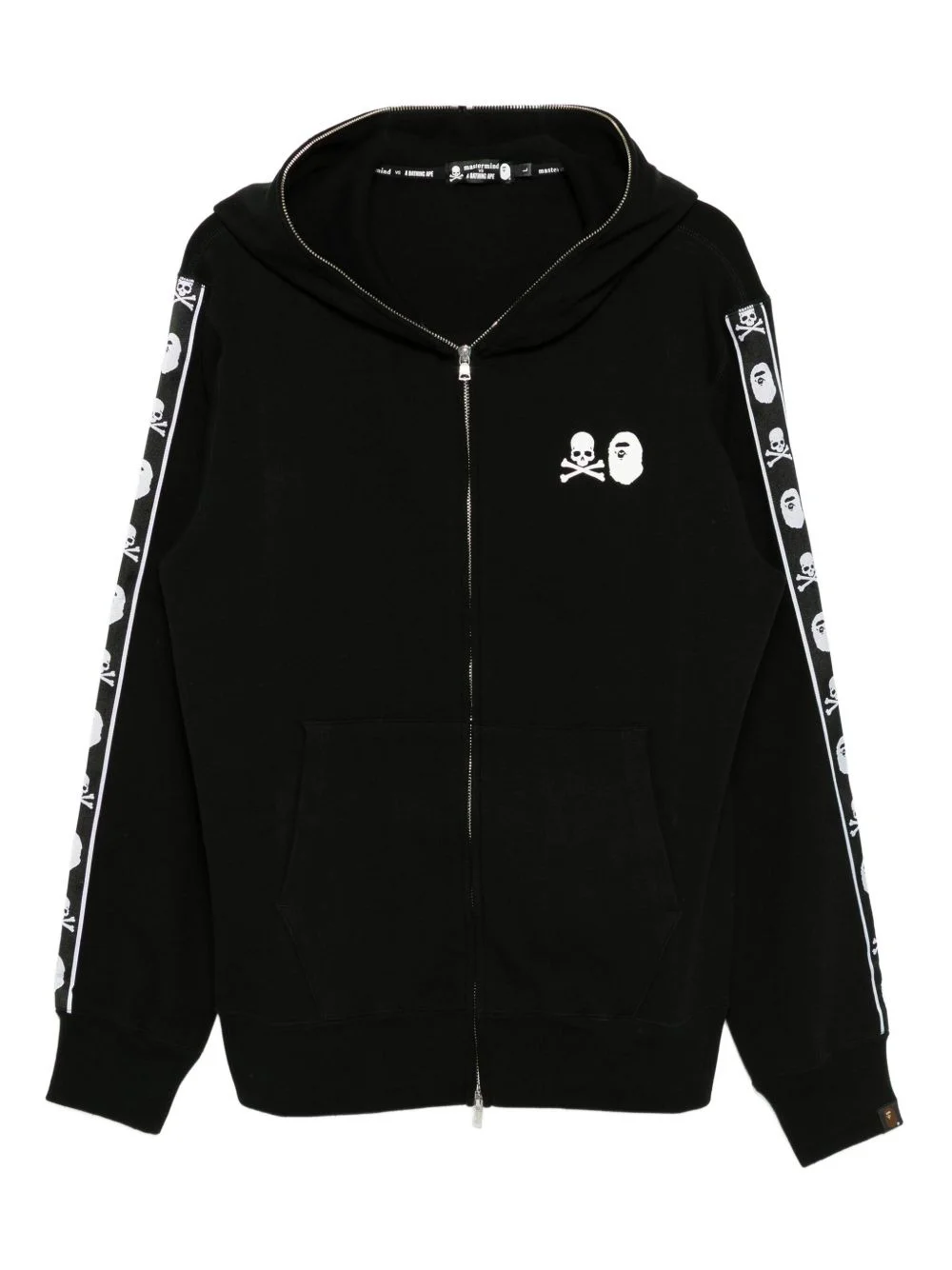 x Bape logo print hoodie Highlights - Black - Front zip fastening - Classic hood - Mini logo tag Imported Composition Cotton 70%, Polyester 30% SIZE & FIT Model measurements Height 6 ft 2 in(1.88 m) Bust/Chest 34.25 in(87 cm) Hips 34.64 in(88 cm) Waist 26.77 in(68 cm) FittingInformation Designed for a relaxed fit, this piece allows for comfort and movement when worn The ribbed hem offers a close, comfortable fit Made from a midweight non-stretch fabric, this piece offers minimal elasticity when worn Washing instructions Machine Wash