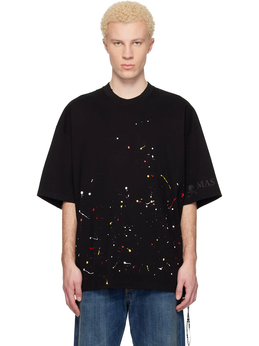 Cotton jersey T-shirt. · Paint splatter and subtle distressing throughout · Rib-knit crewneck · Logo patch at front and back hem · Vented side seams · Logo printed at sleeve and back · Logo-printed trim at interior Supplier color: Black 100% cotton. Made in Japan 261968M213008