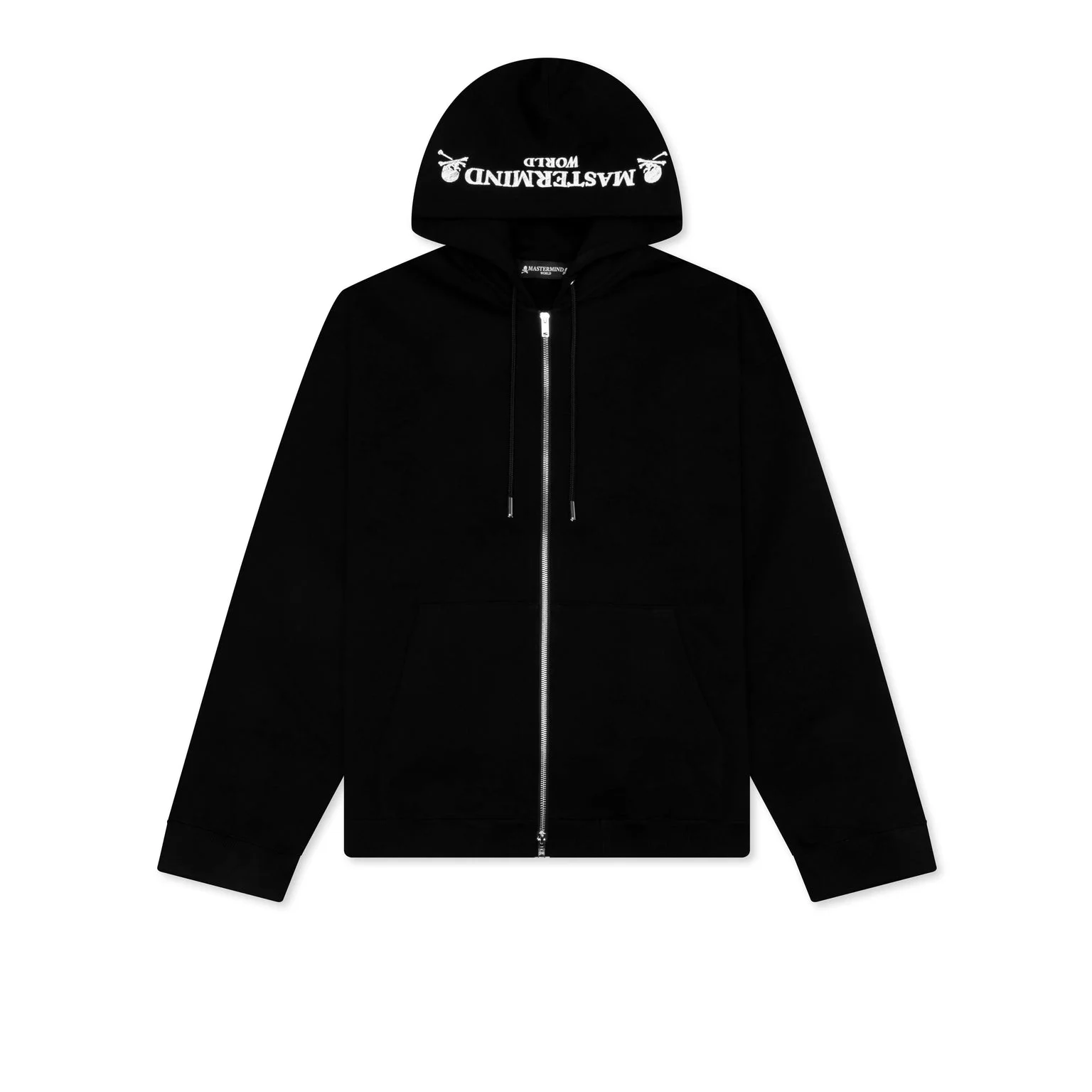 Crafted from cotton, the Mastermind World Boxy OG Puffed Zip-Up Hoodie makes a statement with elevated detailing and everyday wearability. Cut to have a boxy fit, it features a two-way zipper and drawcord hoodie for versatile styling. Practical details include zipper vents on the arm cuffs and a kangaroo pocket. Completed with embroidered and puff-printed logos for signature branding. - 100% Cotton - Two-way zipper closure - Drawcord hoodie - Zipper vents on arm cuffs - Puff-printed graphics - Embroidered skull logos on cuffs - Ribbed trims - Kangaroo pocket - Woven brand tags/straps at hem - Style No: MW26SE1-SW023-014