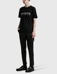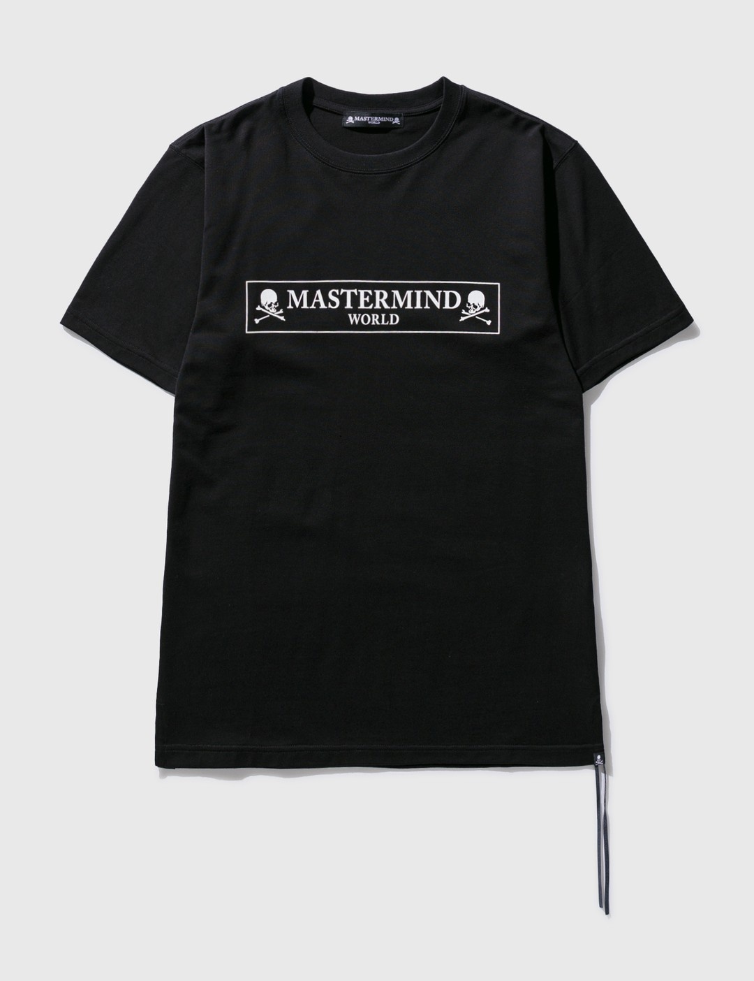 - Mastermind World - Boxy T-shirt - Short sleeve - Relaxed fit - Ribbed crewneck - Front logo print - Back skull anagram print - Color: Black - Material: 100% Cotton SIZING - Model wears size M - Model measures: Height 190cm, Chest 34”/84cm, Waist 28”/70cm, Hip 35”/90cm