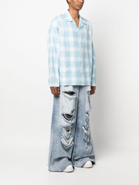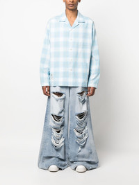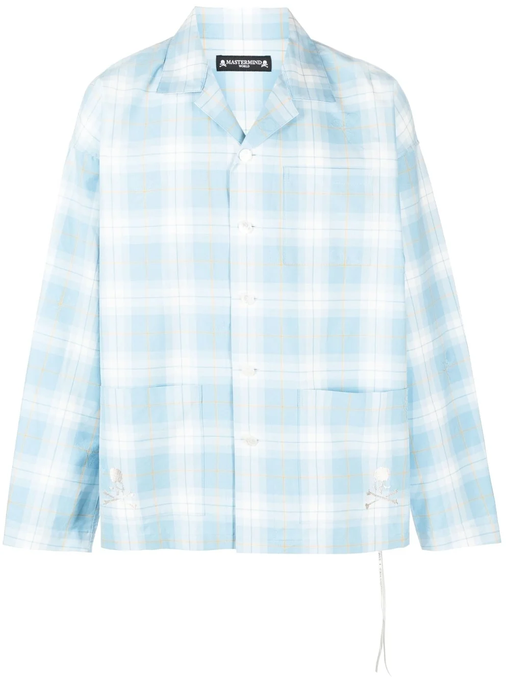 checked long-sleeve shirt Highlights - Light blue/multicolour - Cotton - Check pattern - Skull print to the front - Foil print - Notched collar - Front patch pocket - Front button fastening - Long sleeves Imported Composition Cotton 100% SIZE & FIT Model measurements Height 6 ft 2 in(1.87 m) Bust/Chest 36.22 in(92 cm) Hips 37 in(94 cm) Waist 27.95 in(71 cm) FittingInformation Designed for a boxy fit, intended for a loose fit throughout Made from a midweight non-stretch fabric This piece fits true to size – take your usual size Washing instructions Dry Clean Only