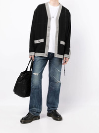 embroidered-logo cardigan black/grey silk-cotton blend embroidered logo to the rear contrasting trim V-neck front button fastening long sleeves buttoned cuffs two button-fastening pockets Imported Composition Body: Silk 67%, Cotton 33% Lining: Polyester 100% SIZE & FIT Model measurements Height 6 ft 0 in(1.83 m) Bust/Chest 37.79 in(96 cm) Hips 37 in(94 cm) Waist 30.31 in(77 cm) FittingInformation This piece fits true to size. We recommend you get your regular size Cut for a loose fit Made with a mid-weight fabric Washing instructions Dry Clean Only