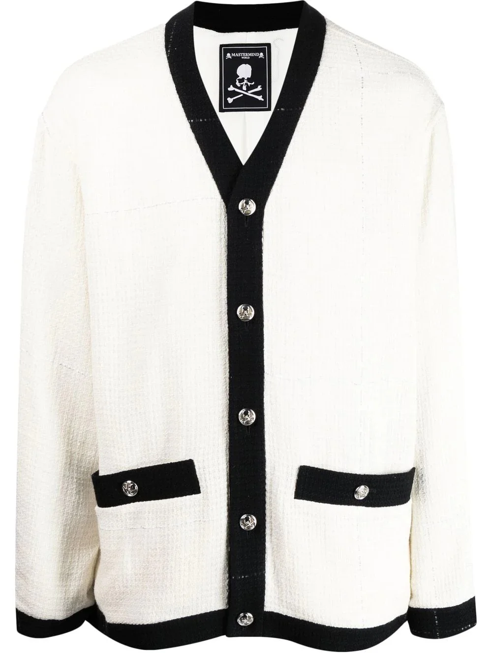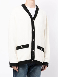 embroidered-logo cardigan white/black silk-cotton blend embroidered logo to the rear contrasting trim V-neck front button fastening long sleeves buttoned cuffs two button-fastening pockets Imported Composition Body: Silk 67%, Cotton 33% Lining: Polyester 100% SIZE & FIT Model measurements Height 6 ft 0 in(1.83 m) Bust/Chest 37.79 in(96 cm) Hips 37 in(94 cm) Waist 30.31 in(77 cm) FittingInformation This piece fits true to size. We recommend you get your regular size Cut for a loose fit Made with a mid-weight fabric Measurement CHEST 49.6 in(126 cm) SLEEVE LENGTH 33.46 in(85 cm) Shoulder Width 20.07 in(51 cm)