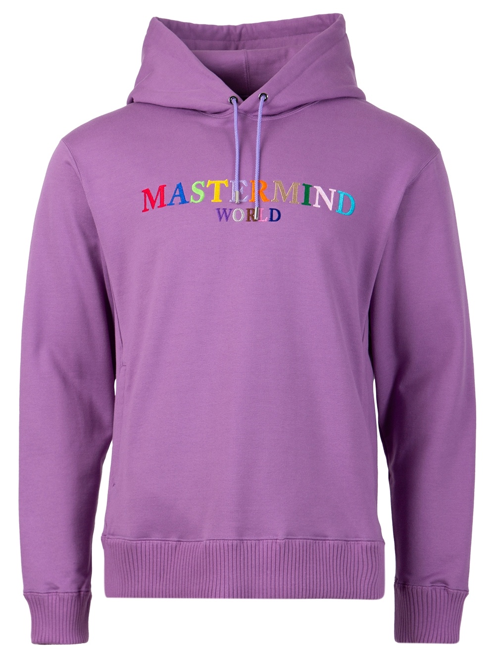 Hoodie from Mastermind World featuring a casual silhouette, long sleeves, straight hem, side slit pockets, hood with adjustable drawstring, ribbed edges, and an embroidered multicolored house logo printed at the chest. Style yours with white sweat shorts and sneakers for a trendy and colorful day out in the city. Dimensions: Model is 6'1"/185cm and is wearing a size M Composition: cotton Care: Machine wash Brand Style: MW21S07-SW029-010
