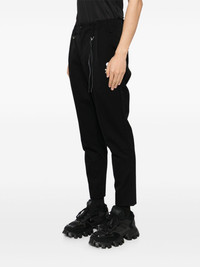 embroidered-logo tapered trousers Highlights - Black - Front button and zip fastening - Two side slash pockets - Two rear flap pockets - Embroidered logo to the front Imported Composition Outer: Wool 100% Lining: Silk 100% SIZE & FIT Model measurements Height 6 ft 2 in(1.88 m) Bust/Chest 34.25 in(87 cm) Hips 34.64 in(88 cm) Waist 26.77 in(68 cm) FittingInformation Designed for a slim tapered leg, offering a close fit that sits just away from the leg with a closer fit towards the ankle Made from a midweight non-stretch fabric