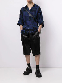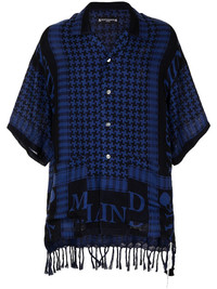 geometric logo-print cotton shirt blue/black cotton geometric print logo-print detailing spread collar front button fastening short sleeves fringed edge Imported Composition Cotton 100% SIZE & FIT Model measurements Height 6 ft 1 in(1.86 m) Bust/Chest 34.64 in(88 cm) Hips 36.22 in(92 cm) Waist 27.16 in(69 cm) FittingInformation This piece fits true to size. We recommend you get your regular size Cut for a loose fit Made with a mid-weight non-stretch fabric Washing instructions Hand Wash