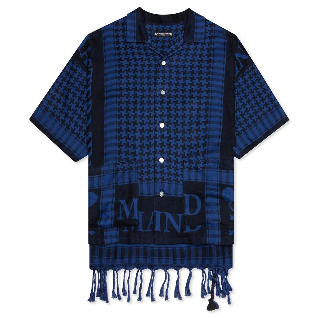 Taking inspiration from cultural scarves and patterns, the Mastermind World Shirt is seen with woven designs and fringe details. The shirt comes with a full length button closure for security while woven pockets are placed at the bottom of its design. An oversized and flowy style is implemented within its premium construction. FINAL SALE ITEM. NOT ELIGIBLE FOR RETURNS/CANCELLATIONS. - 100% cotton - Woven design - Stitched pockets - Fringe details - Full length button closure - Style No: MW21S06-SH014-007