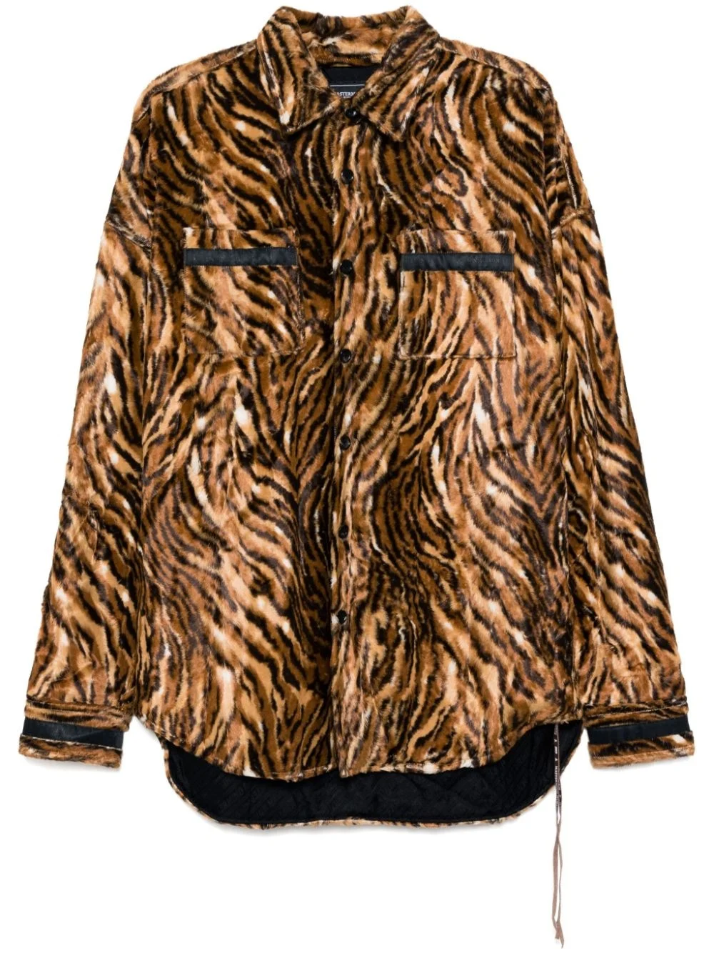 leopard jacket Highlights - Brown - Faux-fur detailing - Front button fastening - Classic collar - All-over leopard print - Two front patch pockets - Long sleeves - Buttoned cuffs - Straight hem - Silk lining Imported Composition Outer: Rayon 100% Lining: Silk 100% SIZE & FIT Model measurements Height 6 ft 2 in(1.87 m) Bust/Chest 33.07 in(84 cm) Hips 35.43 in(90 cm) Waist 26.77 in(68 cm) FittingInformation Designed for an oversized fit, offering additional room throughout Made from a midweight non-stretch fabric
