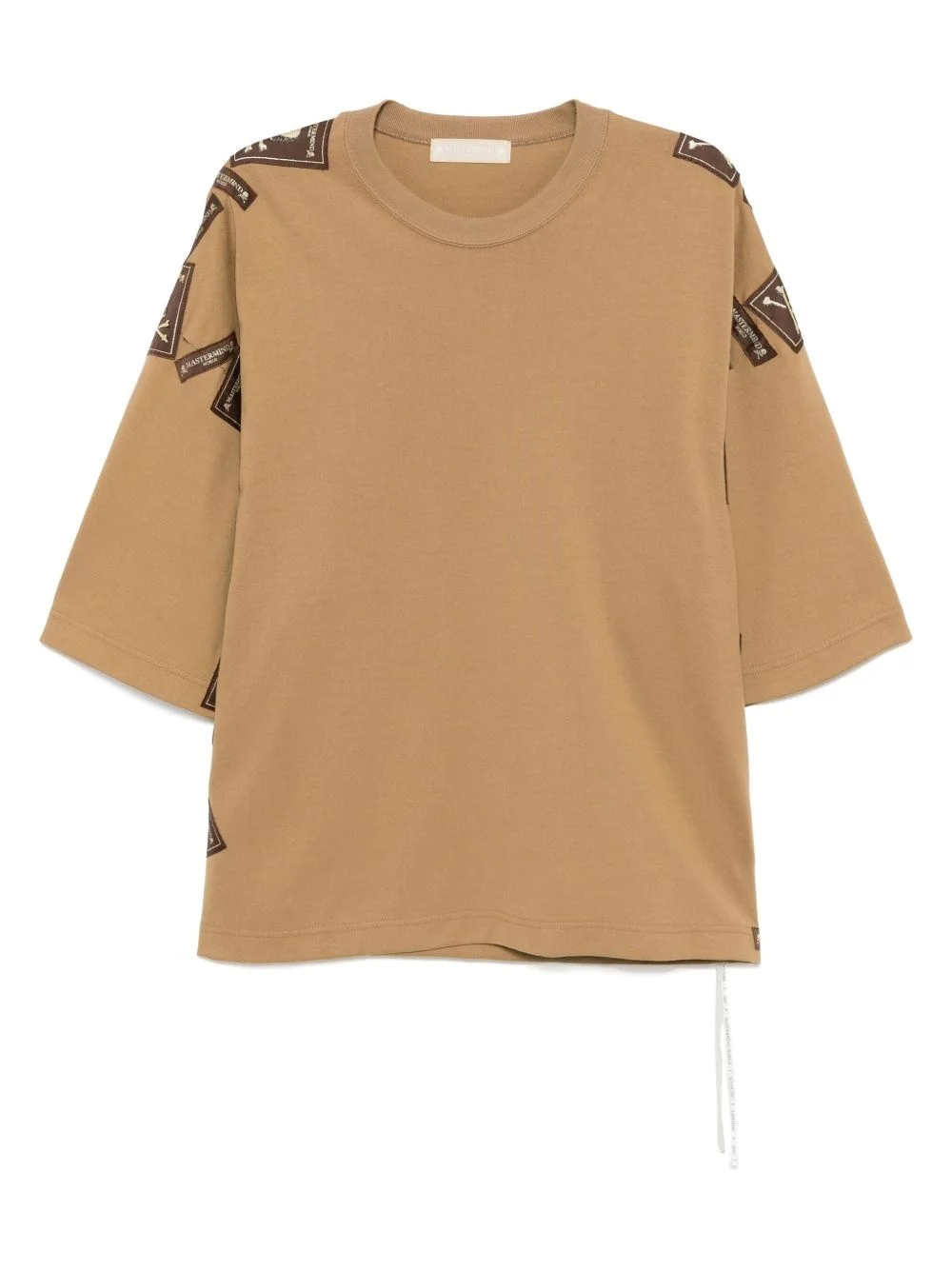 logo-embroidered t-shirt Highlights - Caramel brown - Crew neck - Short sleeves Imported Composition Cotton 100% SIZE & FIT Model measurements Height 6 ft 2 in(1.87 m) Bust/Chest 33.07 in(84 cm) Hips 35.43 in(90 cm) Waist 26.77 in(68 cm) FittingInformation Designed for a relaxed fit, this piece allows for comfort and movement when worn Made from a midweight non-stretch fabric, this piece offers minimal elasticity when worn