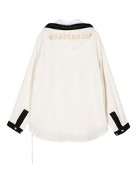 logo-embroidered tweed jacket Highlights - White/black - Silk-cotton blend - Tweed - Embroidered logo to the rear - Drawstring hood - Front press-stud fastening - Long sleeves - Press-stud fastening cuffs - Two chest welt pockets - Curved hem Imported Composition Outer: Silk 67%, Cotton 37% Lining: Polyester 100% Washing instructions Dry Clean Only