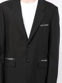 logo-patch single-breasted blazer black wool/silk logo patch to the front notched lapels front button fastening long sleeves straight hem chest welt pocket two side flap pockets Imported Composition Body: Wool 100% Lining: Silk 100% SIZE & FIT Model measurements Height 6 ft 0 in(1.83 m) Bust/Chest 37.79 in(96 cm) Hips 37 in(94 cm) Waist 30.31 in(77 cm) FittingInformation This piece fits true to size. We recommend you get your regular size Cut for a loose fit Made with a mid-weight fabric Washing instructions Dry Clean Only