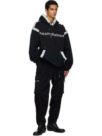Boxy-fit French terry hoodie. · Exposed seams with raw edges throughout · Drawstring at hood · Jacquard logo graphic at chest and back · Kangaroo pocket at front · Rib-knit hem and cuffs · Logo flags at hem · Detachable logo-printed trim at interior Supplier color: Black 100% cotton. Made in Japan 252968M202004