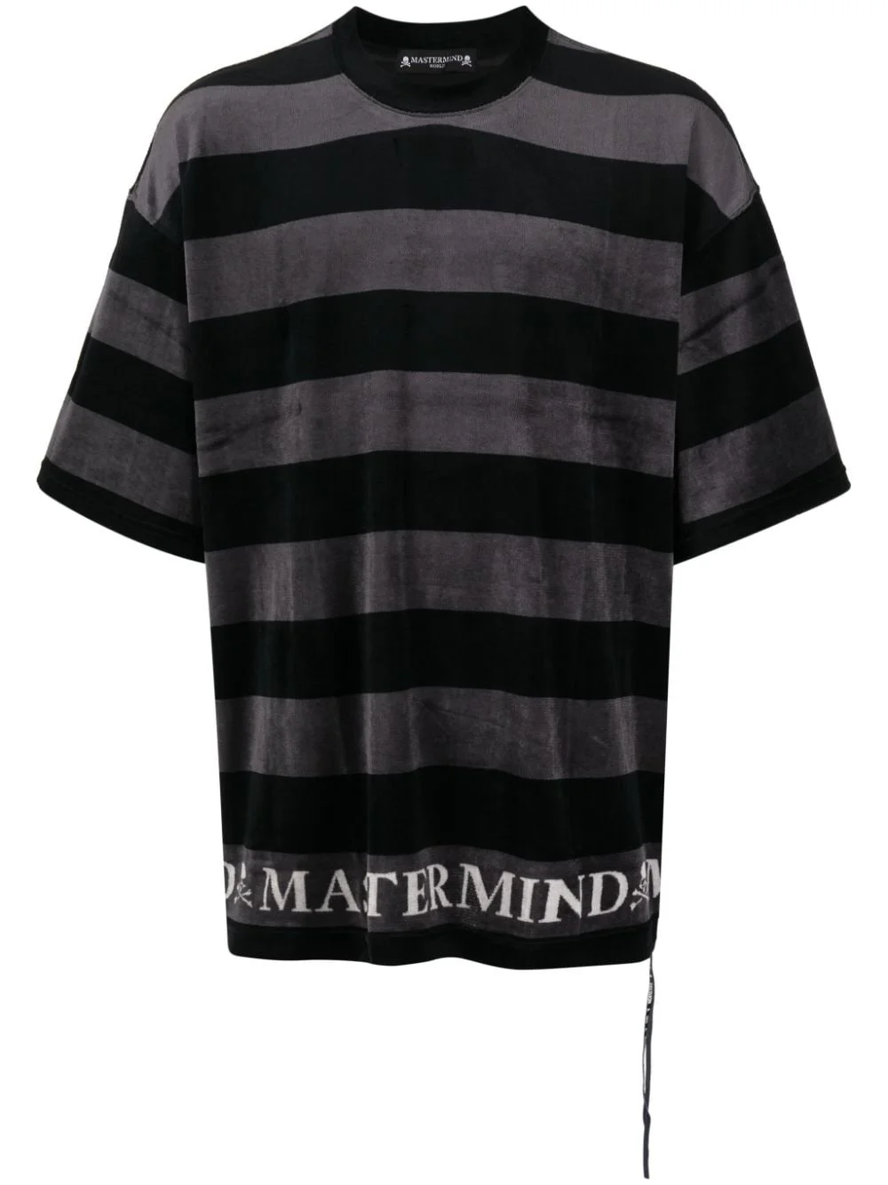 logo-print towelling-finish T-shirt Highlights - Black/grey - Cotton blend - Towelling finish - Horizontal stripe print - Logo print to the front - Round neck - Short sleeves - Straight hem Imported Composition Cotton 75%, Polyester 25% SIZE & FIT Model measurements Height 6 ft 2 in(1.88 m) Bust/Chest 31.88 in(81 cm) Hips 35.82 in(91 cm) Waist 27.55 in(70 cm) FittingInformation Designed for an oversized fit, offering additional room throughout Made from a midweight non-stretch fabric, this piece offers minimal elasticity when worn This piece fits true to size – take your usual size Washing instructions Hand Wash