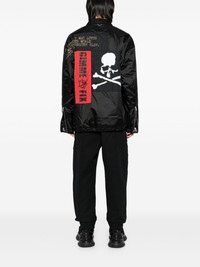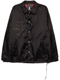 logo-printed jacket Highlights - Black/white - Front press-stud fastening - Slogan print to the front - Logo print to the rear - Classic collar - Two front welt pockets - Long sleeves - Straight hem - Drawstring hem - Silk lining Imported Composition Outer: Nylon 100% Sleeve Lining: Silk 100% SIZE & FIT Model measurements Height 6 ft 2 in(1.87 m) Bust/Chest 33.07 in(84 cm) Hips 35.43 in(90 cm) Waist 26.77 in(68 cm) FittingInformation Designed to be unstructured, offering a loose fit throughout The internal drawstring at the hem allows for fitted preferences Made from a midweight non-stretch fabric
