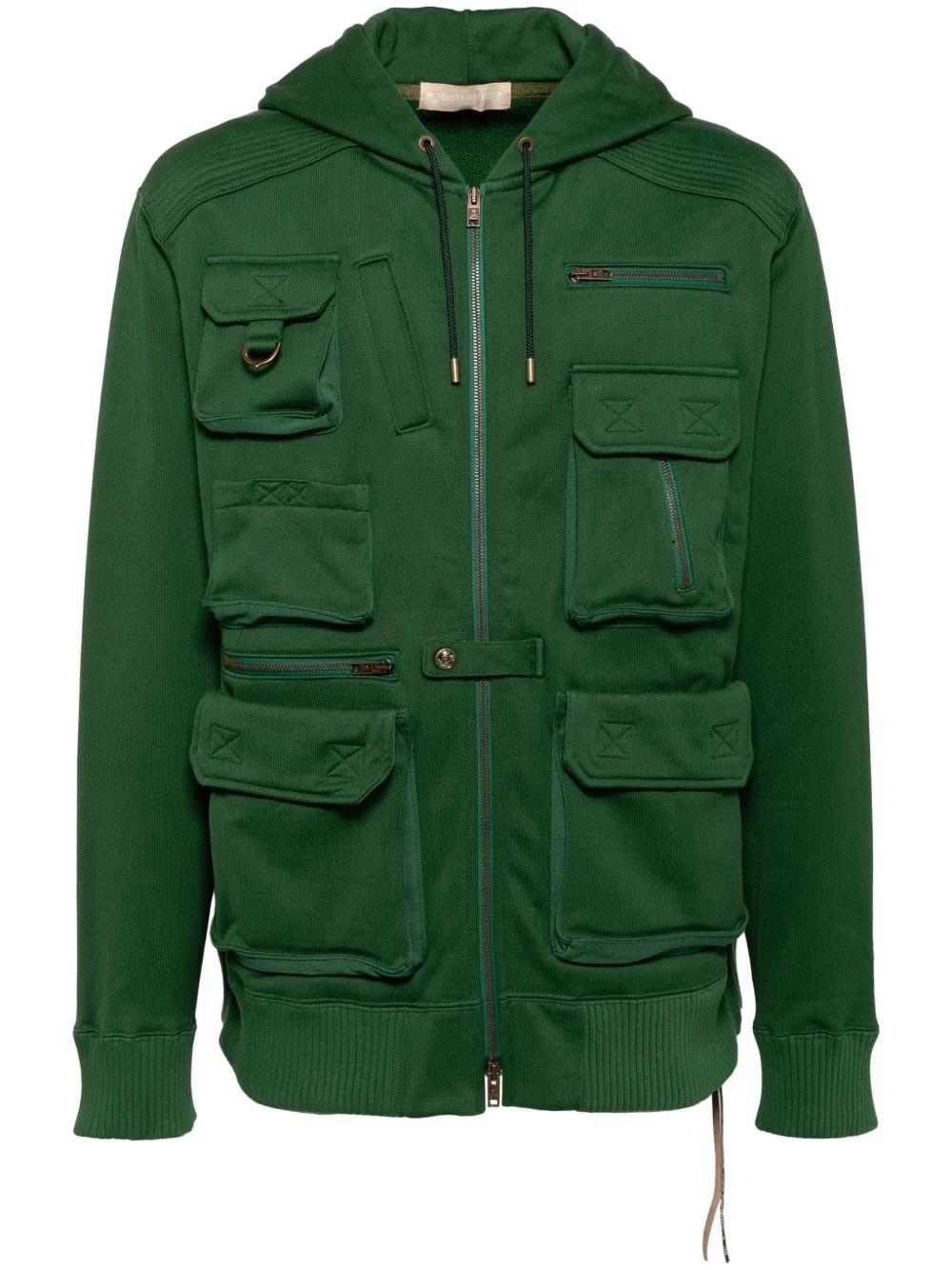 multiple cargo pockets hoodie Highlights - Green - Front zip fastening - Slouchy drawstring hood - Two side welt pockets - Ribbed cuffs and hem Imported Composition Lining: Polyester 100% Outer: Cotton 100% SIZE & FIT Model measurements Height 6 ft 2 in(1.88 m) Bust/Chest 34.25 in(87 cm) Hips 34.64 in(88 cm) Waist 26.77 in(68 cm) FittingInformation Designed to be unstructured, offering a loose fit throughout Constructed with additional length on the sleeve Made from a heavyweight non-stretch fabric, this piece offers minimal elasticity when worn