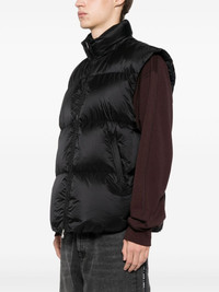 puffer vest Highlights - Black - Quilted finish - Down-feather filling - Front two-way zip fastening - Funnel neck - Two zip-fastening pockets - Zip fastening - Graphic print to the rear - Full lining - Internal slip pockets - Straight hem Imported Composition Filling: Down 90%, Feather 10% Outer: Nylon 100% SIZE & FIT Model measurements Height 6 ft 2 in(1.89 m) Bust/Chest 35.03 in(89 cm) Hips 34.64 in(88 cm) Waist 28.34 in(72 cm) FittingInformation Designed for a relaxed fit, this piece allows for comfort and movement when worn Made from a padded non-stretch fabric, giving it no natural elasticity Measurement LENGTH 29.52 in(75 cm) WAIST 48.81 in(124 cm) BUST 50.39 in(128 cm) Shoulder Width 21.25 in(54 cm)