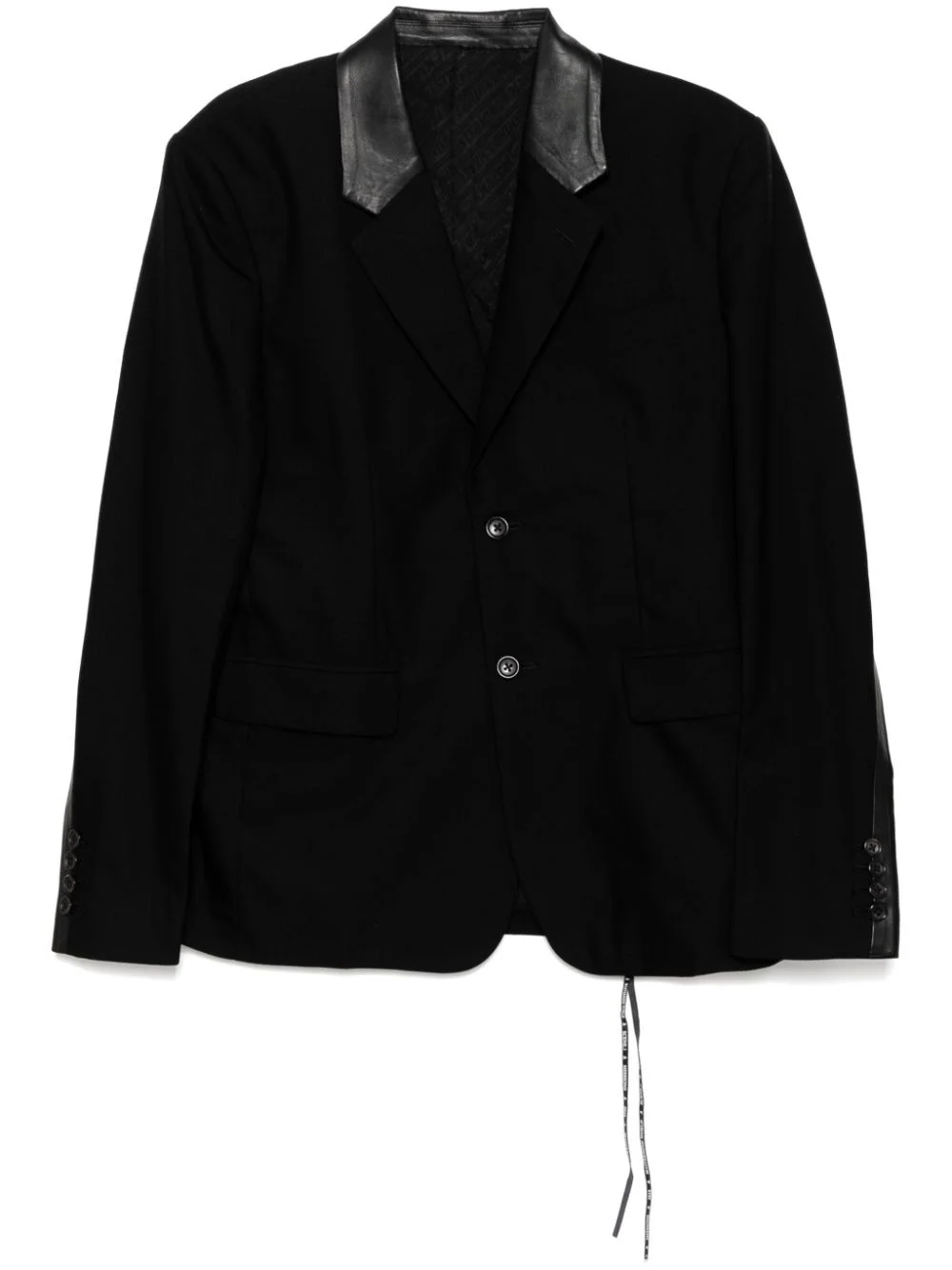 single-breasted blazer Highlights - Black - Front button fastening - Internal logo patch - Internal pockets - Full lining Imported Composition Outer: Wool 100% Lining: Silk 100% SIZE & FIT Model measurements Height 6 ft 2 in(1.87 m) Bust/Chest 33.07 in(84 cm) Hips 35.43 in(90 cm) Waist 26.77 in(68 cm) FittingInformation Designed to be unstructured, offering a loose fit throughout The internal shoulder pads offer a structured shape Made from a midweight non-stretch fabric