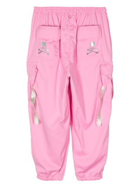 skull-print cargo trousers Highlights - Pink - Skull print to the rear - Elasticated waistband - Two side flap pockets - Two side cargo pockets - Two rear flap pockets - Elasticated cuffs - Tapered leg Imported Composition Polyester 100%