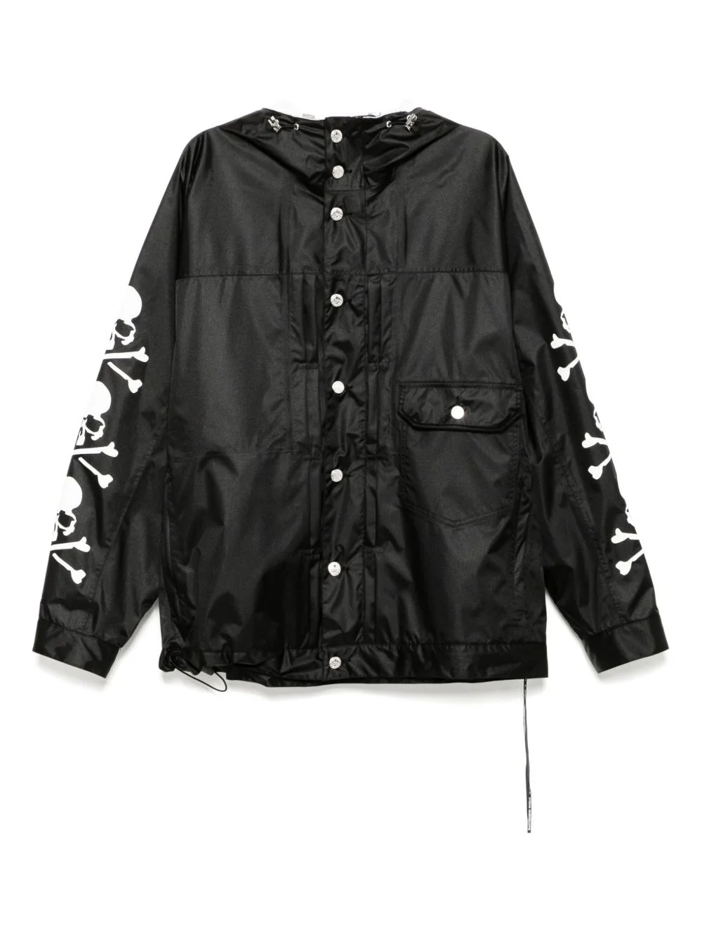 skull-print jacket Highlights - Black - Front button and zip fastening - Drawstring hood - Two side zip-fastening pockets - Buttoned cuffs Imported Composition Nylon 100% SIZE & FIT Model measurements Height 6 ft 2 in(1.88 m) Bust/Chest 34.25 in(87 cm) Hips 34.64 in(88 cm) Waist 26.77 in(68 cm) Measurement CHEST 55.9 in(142 cm) LENGTH 29.52 in(75 cm) SLEEVE LENGTH 23.62 in(60 cm) WAIST 52.75 in(134 cm) FittingInformation Designed to be unstructured, offering a loose fit throughout The internal drawstring at the hem allows for fitted preferences Made from a midweight non-stretch fabric