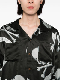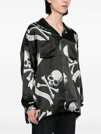 skull-printed shirt Highlights - Black/grey - Silk - Satin weave - Skull print - Front button fastening - Classic collar - Long sleeves - Buttoned cuffs - Curved hem - High-low hem Imported Composition Silk 100% SIZE & FIT Model measurements Height 6 ft 2 in(1.87 m) Bust/Chest 33.07 in(84 cm) Hips 35.43 in(90 cm) Waist 26.77 in(68 cm) FittingInformation Designed for an oversized fit, offering additional room throughout Made from a lightweight non-stretch fabric
