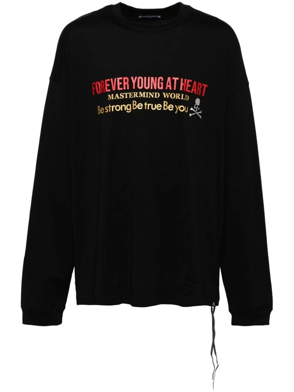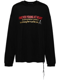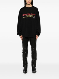 slogan print long-sleeves T-shirt Highlights - Black - Logo patch to the rear - Crew neck - Drop shoulder - Ribbed cuffs Imported Composition Cotton 100% SIZE & FIT Model measurements Height 6 ft 2 in(1.88 m) Bust/Chest 34.25 in(87 cm) Hips 34.64 in(88 cm) Waist 26.77 in(68 cm) FittingInformation Designed to be unstructured, offering a loose fit throughout Made from a midweight non-stretch fabric, this piece offers minimal elasticity when worn