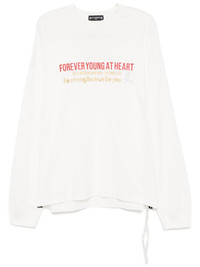 logo print T-shirt Highlights - White - Long sleeves - Ribbed cuffs and hem Imported Composition Cotton 100% SIZE & FIT Model measurements Height 6 ft 2 in(1.88 m) Bust/Chest 34.25 in(87 cm) Hips 34.64 in(88 cm) Waist 26.77 in(68 cm) FittingInformation Designed for an oversized fit, offering additional room throughout Constructed with additional length on the sleeve Made from a midweight non-stretch fabric, this piece offers minimal elasticity when worn