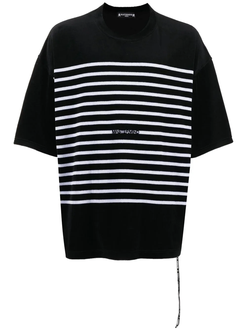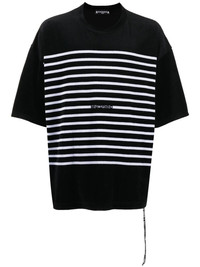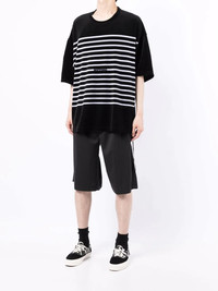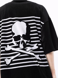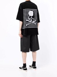striped skull-print T-shirt black cotton-blend horizontal stripe print logo print at the chest skull print to the rear round neck short sleeves straight hem Imported Composition Cotton 75%, Polyester 25% SIZE & FIT Model measurements Height 6 ft 0 in(1.84 m) Bust/Chest 35.43 in(90 cm) Hips 35.82 in(91 cm) Waist 28.74 in(73 cm) FittingInformation This piece fits true to size. We recommend you get your regular size Cut for an oversized fit Made with a mid-weight fabric Washing instructions Hand Wash