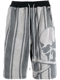 striped skull-print track shorts
