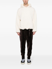 tapered velour track pants Highlights - Coffee brown - Cotton blend - Velour - Strap detailing - Jacquard logo motif - Skull applique - Mid-rise - Elasticated drawstring waistband - Two side slit pockets - Two rear patch pockets - Tapered leg - Elasticated ankles Imported Composition Cotton 75%, Polyester 25% SIZE & FIT Model measurements Height 6 ft 2 in(1.89 m) Bust/Chest 37.4 in(95 cm) Hips 36.61 in(93 cm) Waist 28.34 in(72 cm) FittingInformation Designed for a tapered leg, offering a loose unrestricted fit over the leg with a closer fit towards the ankle Adjust this piece’s waistband to your preference using the drawstring Made from a midweight non-stretch fabric This piece fits true to size – take your usual size Washing instructions Hand Wash