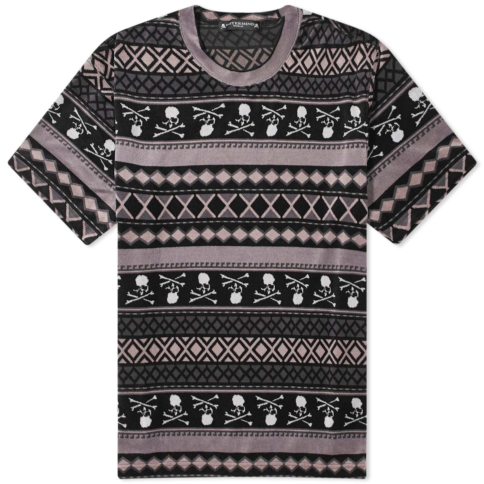 MASTERMIND WORLD ventures from its Japanese roots and goes global, embodied by the Velour Skull T-Shirt. Crafted from unique velour fabric for unparalleled softness, this casual tee features an all-over tribal print interspersed with the brand’s well-known skull and crossbones motif - blending Japanese edge with worldly appeal. - 75% Cotton, 25% Polyester - Velour Fabric - Woven Brand Patch - Made in Japan