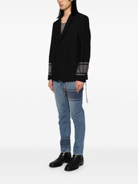 wool blazer Highlights - Black - Front button fastening - Two front flap pockets - English rear vents - Buttoned cuffs Imported Composition Wool 100% SIZE & FIT Model measurements Height 6 ft 2 in(1.88 m) Bust/Chest 34.25 in(87 cm) Hips 34.64 in(88 cm) Waist 26.77 in(68 cm) FittingInformation Designed to be unstructured, offering a loose fit throughout The internal shoulder pads offer a structured shape Made from a midweight non-stretch fabric