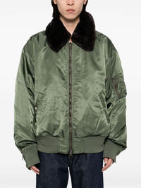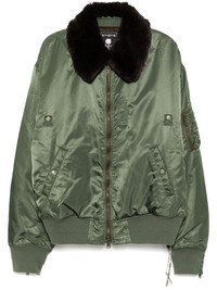 zip-up bomber jacket Highlights - Olive green - Front two-way zip fastening - Faux-fur collar - Two side button-fastening pockets - Ribbed cuffs and hem Imported Composition Outer: Nylon 100% Lining: Silk 100% SIZE & FIT Model measurements Height 6 ft 2 in(1.87 m) Bust/Chest 33.07 in(84 cm) Hips 35.43 in(90 cm) Waist 26.77 in(68 cm) FittingInformation Designed for an oversized fit, offering additional room throughout The elasticated hem allows for movement and a comfortable fit Made from a midweight non-stretch fabric