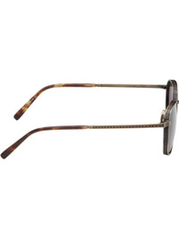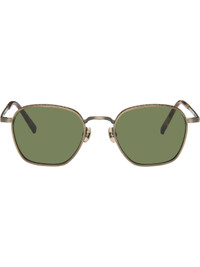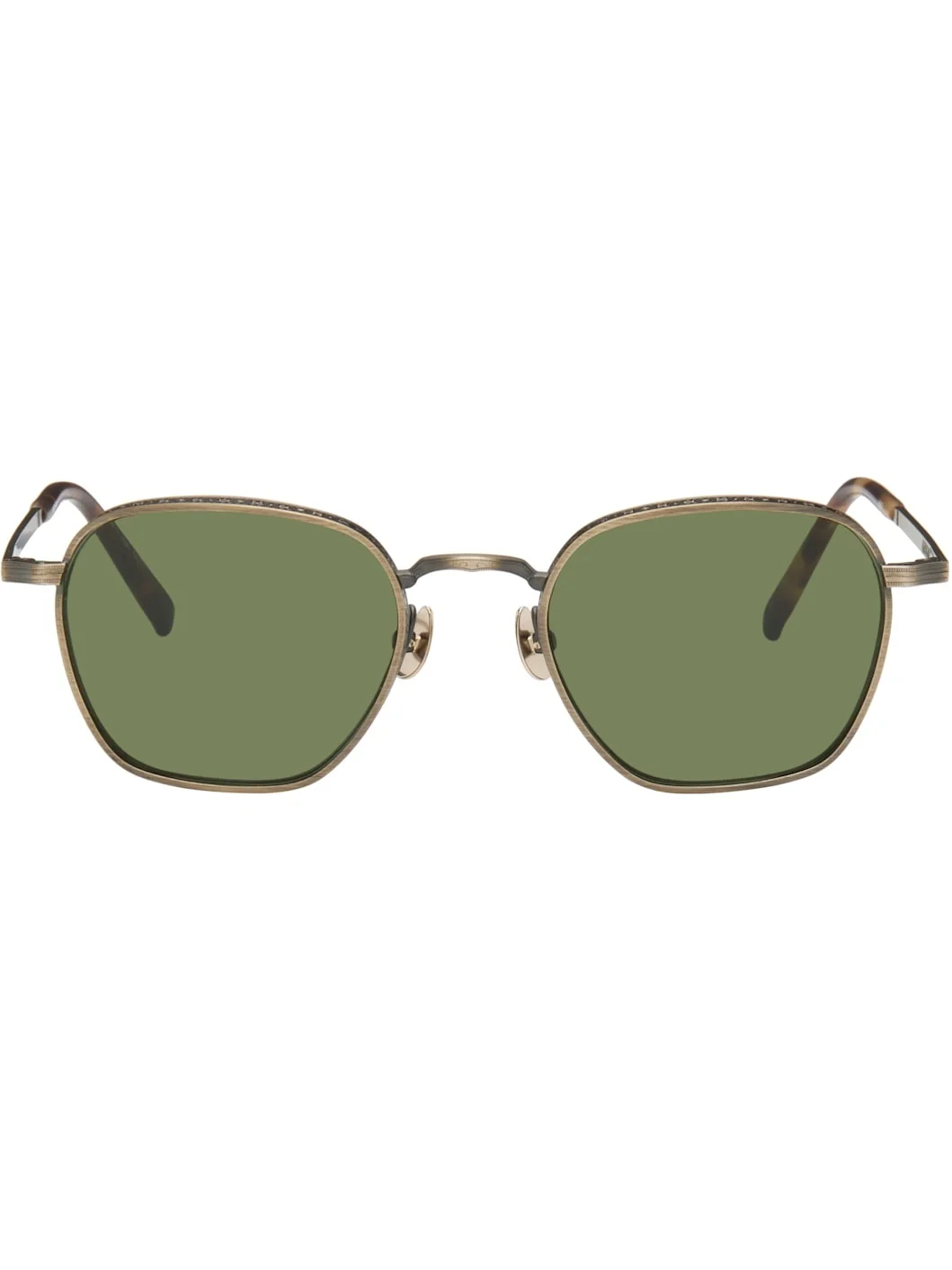 Hexagonal titanium-frame sunglasses in antiqued gold tone. Hand-lacquered detailing, logo pattern, and engraved detailing throughout. · Lightweight · Green lenses · 100% UVA/UVB protection · Adjustable titanium nose pads · Tortoiseshell acetate temple tips · Includes case · Size: 52.21 145 Supplier color: Antique gold/Dark brown Titanium, acetate. Made in Japan 252167M134014