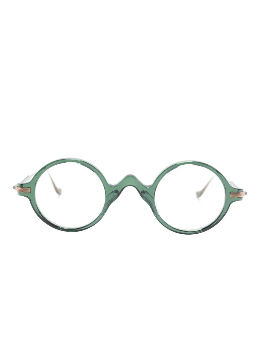 round-frame glasses Highlights - Green - Round frame - Nose pads - Straight temples - Temple detailing - All glasses from farfetch are sold as non-prescription frames. - These glasses come with a protective case. Imported Composition Acetate 100%, Titanium 100% SIZE & FIT Measurement Arm Length 5.7 in(14.5 cm) Bridge Width 1.1 in(2.8 cm) Lens Diameter 1.53 in(3.9 cm)