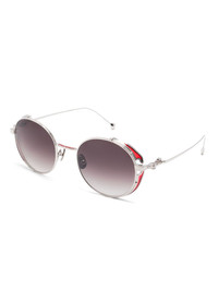 round-frame sunglasses Highlights - Silver-tone - Nose pads - Round frame - Straight arms - These glasses come with a protective case. Imported Composition Metal 100% SIZE & FIT Measurement Arm Length 5.7 in(14.5 cm) Bridge Width 0.78 in(2 cm) Lens Diameter 1.88 in(4.8 cm) Total Width 5.31 in(13.5 cm)