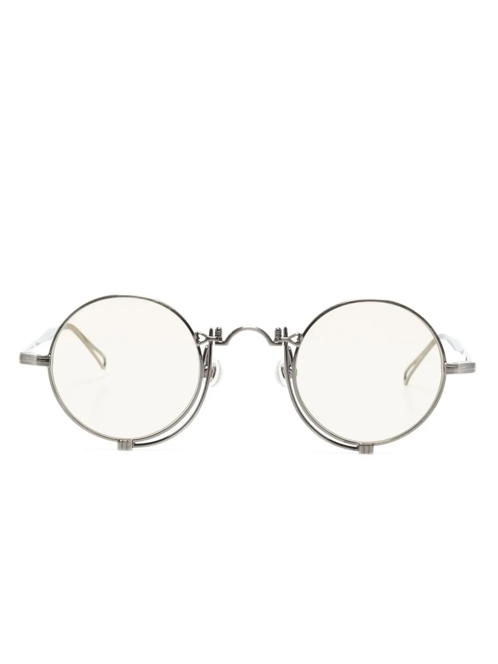 tinted-lenses round-frame sunglasses Highlights - Silver-tone - Titanium - Round frame - Orange tinted lenses - Uv-protective lenses - Nose pads - Straight arms - Curved tips - These glasses come with a protective case. Imported Composition Titanium 100% SIZE & FIT Measurement Arm Length 5.7 in(14.5 cm) Bridge Width 1.06 in(2.7 cm) Lens Diameter 1.77 in(4.5 cm) Total Width 5.31 in(13.5 cm)