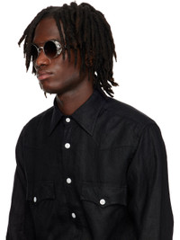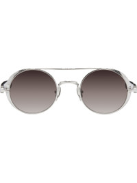 Handcrafted round titanium- and acetate-frame sunglasses in silver tone. · Filigree detailing and logo pattern throughout · Top bar · Gradient black lenses · Adjustable titanium nose pads · Logo hardware at temple tips · Includes case · Size: 48.22 135 Supplier color: Palladium white Titanium, acetate. Made in Japan 252167M134022