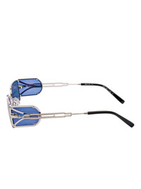 rectangle-frame sunglasses Highlights - Silver-tone - Nose pads - Cut-out detailing - These glasses come with a protective case. Imported Composition Titanium 75% SIZE & FIT Measurement Bridge Width 0.82 in(2.1 cm) Lens Diameter 1.88 in(4.8 cm) Total Width 5.19 in(13.2 cm) Arm Length 5.7 in(14.5 cm)