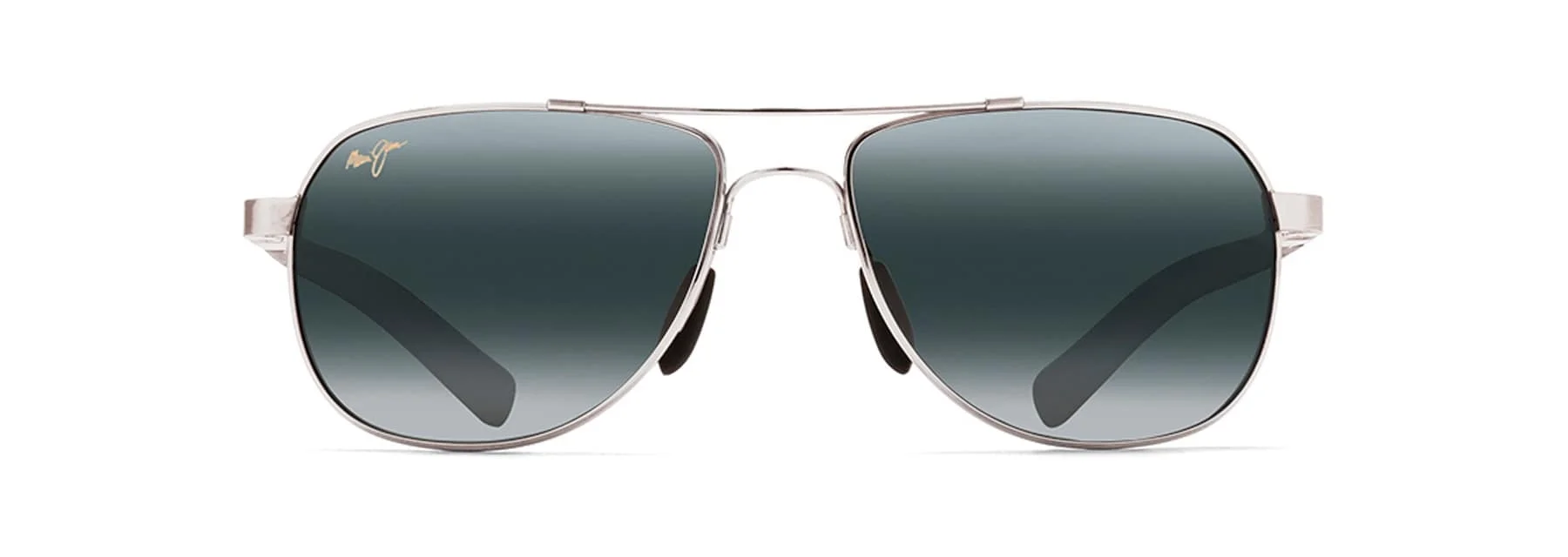 Polarized Aviator Sunglasses Named after a west shore surf break just south of Lahaina known for waves that break close to shore, the classic Guardrail sunglasses from Maui Jim are a perfect mix of trusted durability and clarity with their lightweight frame and bright, polarized lenses. Shop the polarized aviators collection. Product Details SKU: 327-17 Frame: Silver with Blue and Light Blue Lens: Neutral Grey Lens Material: MauiBrilliant