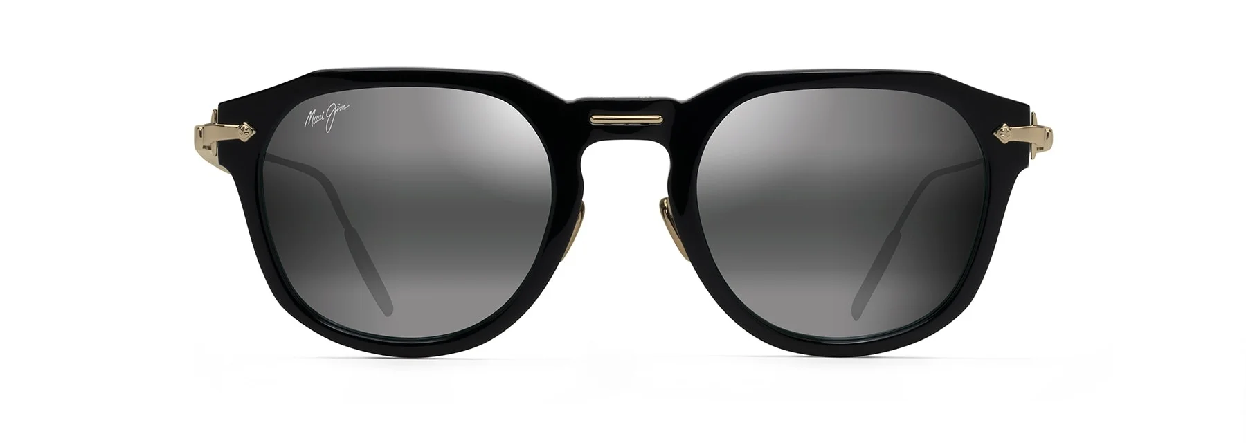 Polarized Luxury Sunglasses Inspired by “The Arctic” ship, the mele hula flows through a voyage on Alika with vocal prowess and sustained nostalgia, sounding an open invitation to reimagine lush experiences and breathtaking visuals. Alika is characterized by ornate detailing, promising bespoke comfort and thoughtful distinction in an alluring silhouette. The titanium temples are anchored to the injected front in baroque style hinges reminiscent of a lighthouse tower, and the keyhole bridge adds shimmering contrast with the unexpected structural reveal of the ceramic nose pads. Product Details SKU: 837-02 Frame: Black with Gold Lens: Neutral Grey Lens Material: MauiBrilliant