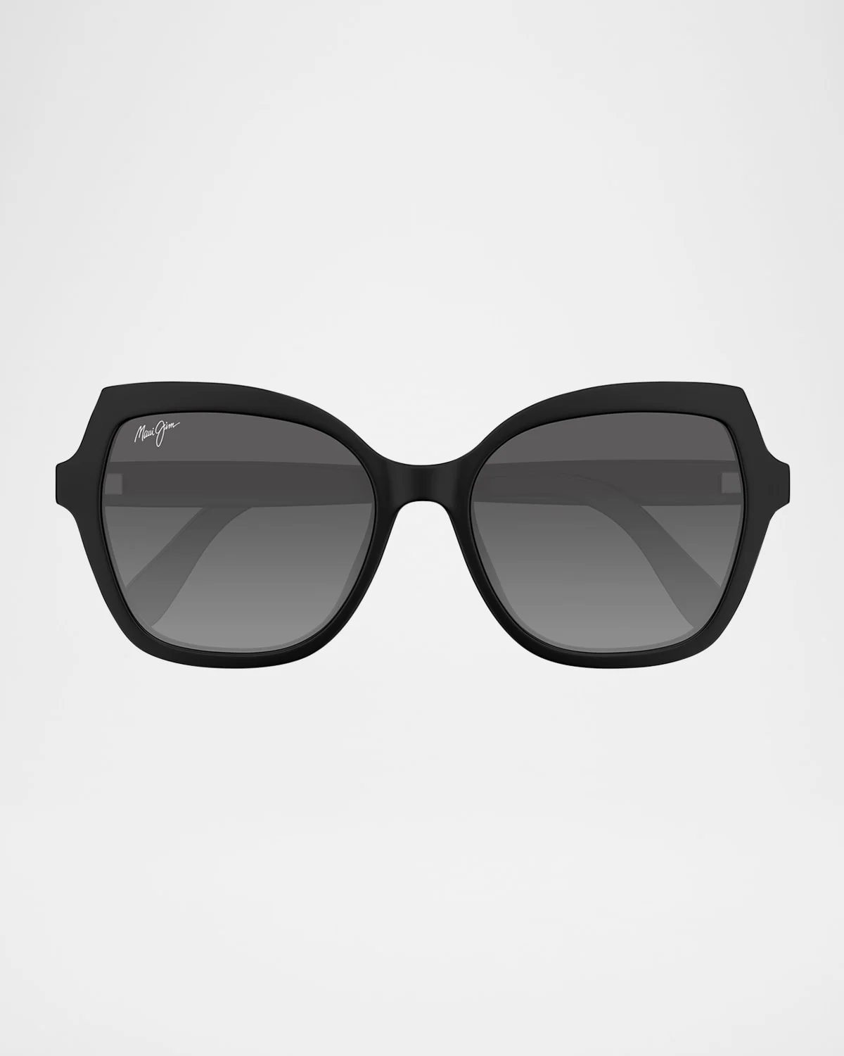 - Maui Jim "Mamane" butterfly sunglasses in acetate - Lens/bridge/temple (in mm): - 55-18-140 - Logo script on the right lens and temples - Solid-color lenses - Saddle nose bridge - Curved temple tips - Acetate - Wipe clean - 100% UVA/UVB protection - Made in Italy - Proposition 65 warning for California residents